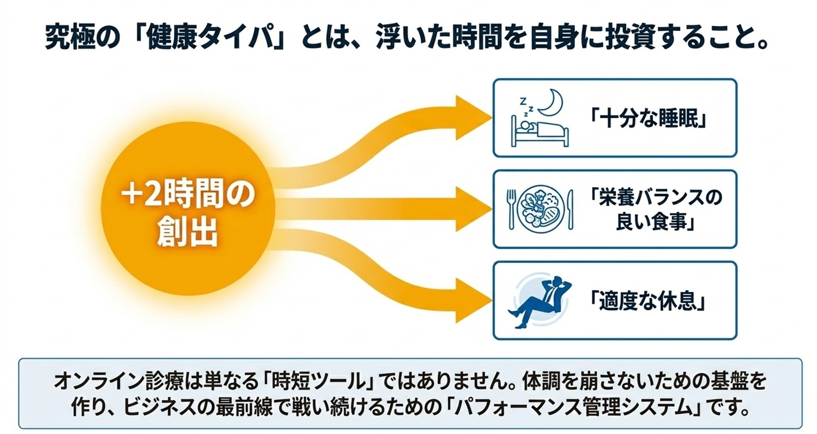 最後に、究極の「健康タイパ」は「健康的な生活を送り、体調を崩さないこと」です。