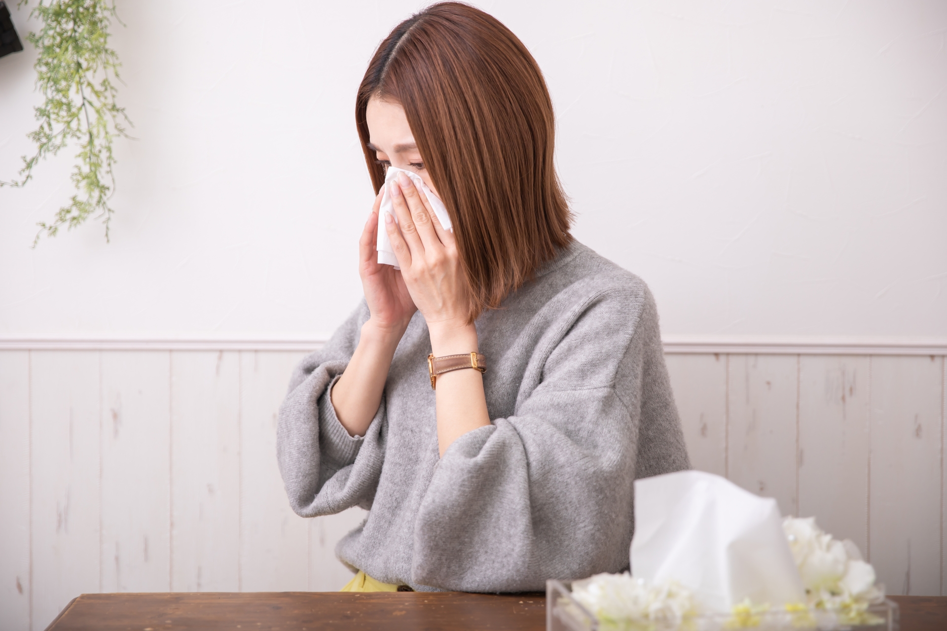花粉症とは、スギやヒノキ、ブタクサなどの植物の花粉が原因となり、鼻水や目のかゆみなどのアレルギー症状を引き起こす病気です。季節性アレルギー性鼻炎とも呼ばれています。
